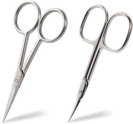- Pack of 2 Curved Tip Scissor is perfect for eyebrow and eyelashes cutting and can also for clipping cuticles and hangnails. Straight Tip Scissors used for grooming all facial Hairs,