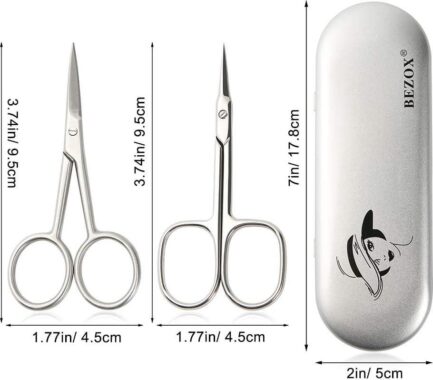 BEZOX Small Scissors 2 PCS Set – Nail Cuticle Scissors/Manicure Scissors Kit – Straight and Curved Blade Beauty Scissor for Beard/Mustache, Nose Hair, Ear Hair, Eyelashes and Eyebrow Trimming
